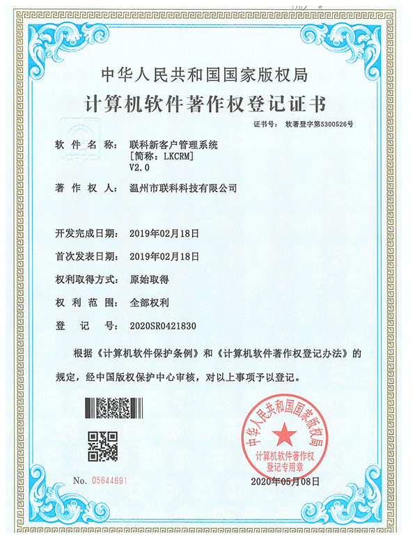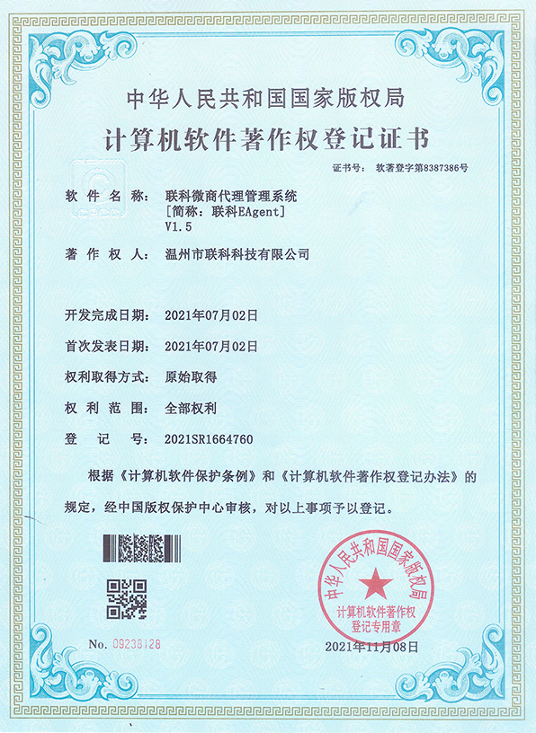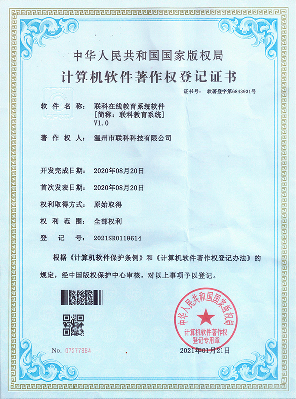 聯科教培行業智慧運營系統V1.0登記證書(2022R11L2324133)