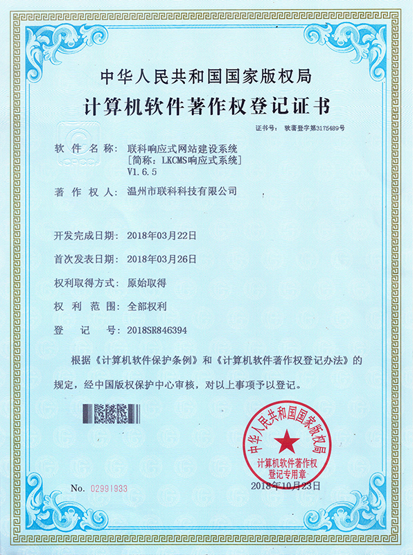 聯科圖片資源管理系統V1.0登記證書(2022R11L2489419)