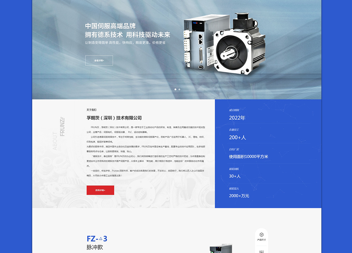 FRUNZE,孚朗茨(深圳)技術有限公司,是一家專注于工業自動化產品的研發、制造、銷售及應用集成方案的技術驅動型公司,主營產品:伺服電機、伺服驅動器 、 PLC、運動控制器等。公司引進德國伺服底層技術,專注于將高性能、全功能的德系伺服國產化,目前產品廣泛運用于機器人、3C、鋰電、紡織、印刷包裝、剪鈑折彎等領域。