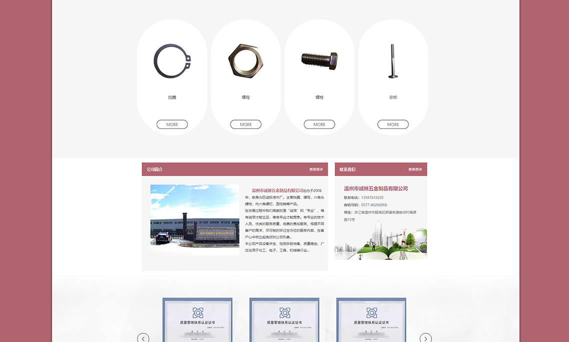 溫州市誠琳五金制品有限公司創辦于2008年,前身為巨誠標準件廠。主營擋圈,螺母,六角頭螺栓,內六角螺釘,圓柱銷等產品。在發展過程中我們推崇的是“誠信”和“專業”,唯有誠信才能立足,唯有專業才能競爭。有專業的技術人員,優良的服務質量,完善的售后服務,根據不同客戶的需求,盡可能的聽過全方位的服務內容,在客戶心中樹立起良好的公司形象。