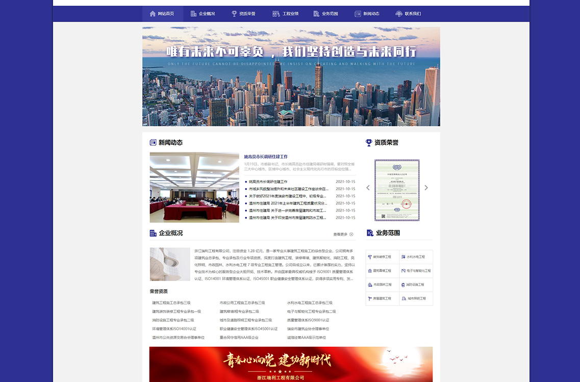 浙江瑞利工程有限公司,注冊資金 1.28 億元,是一家專業從事建筑工程施工的綜合型企業,公司擁有多項建筑業總承包、專業承包及行業專項資質,深度打造建筑工程、裝修幕墻、建筑智能化、消防工程、亮化照明、市政園林、水利水電工程 7 項專業工程施工管理。