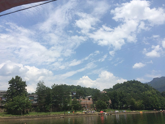 第二站綠道自行車,道路兩邊的綠蔭,溪流,還夾著著暖暖的微風,兩人一輛,四人一輛,別說有多么愜意了。第三站竹筏漂流,楠溪江的江面是平靜的,船夫緩緩的劃著竹筏,我們坐著竹筏靜靜的享受著。