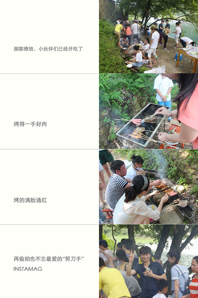 第四站燒烤,每個人分工配合著,生火的、串肉的、調料的,生火的過程遇到了點小麻煩,但小伙伴們還是體驗了一把。