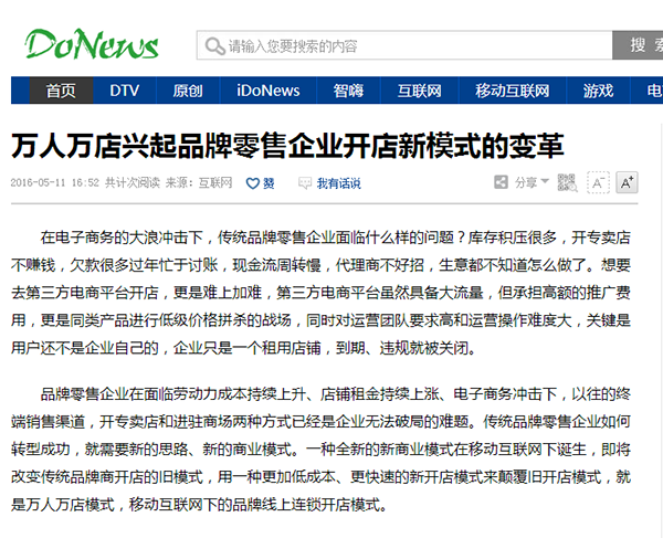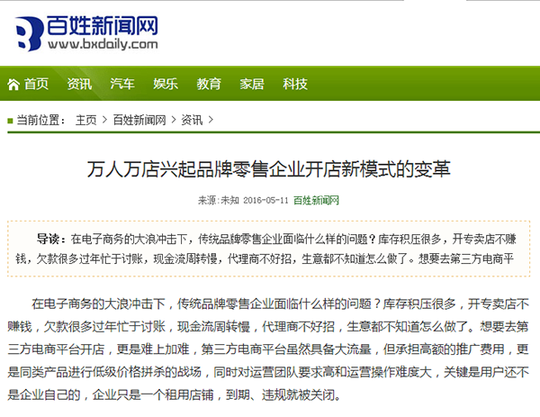 火爆的互聯網商業模式是什么?當然是萬人萬店商業模式,萬人萬店商業模式自面世以來,掀起 了一股在移動互聯網上開連鎖店的新風潮,各大門戶網站紛紛對萬人萬店模式進行了報道。