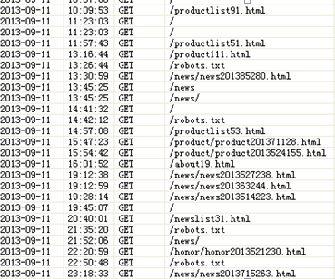 第三,綜合的指導。經常性我們在日志里可以發現一些返回值不是200的條目,而通過日志的返回值我們就可以很容易地找到,這個頁面,并且對于這個頁面的錯誤或者不足進行修改。而通過對于網站每天日志的對比記錄,我們可以發現,蜘蛛每天來網站的次數是增加了還是減少了。如果增加了,是一些友好的IP還是不好的IP,這些記錄又是從哪個入口進入的。從而分析出我們在日常的網站SEO工作中,在哪些方面是做得比較好的,哪些方面是不足的。
