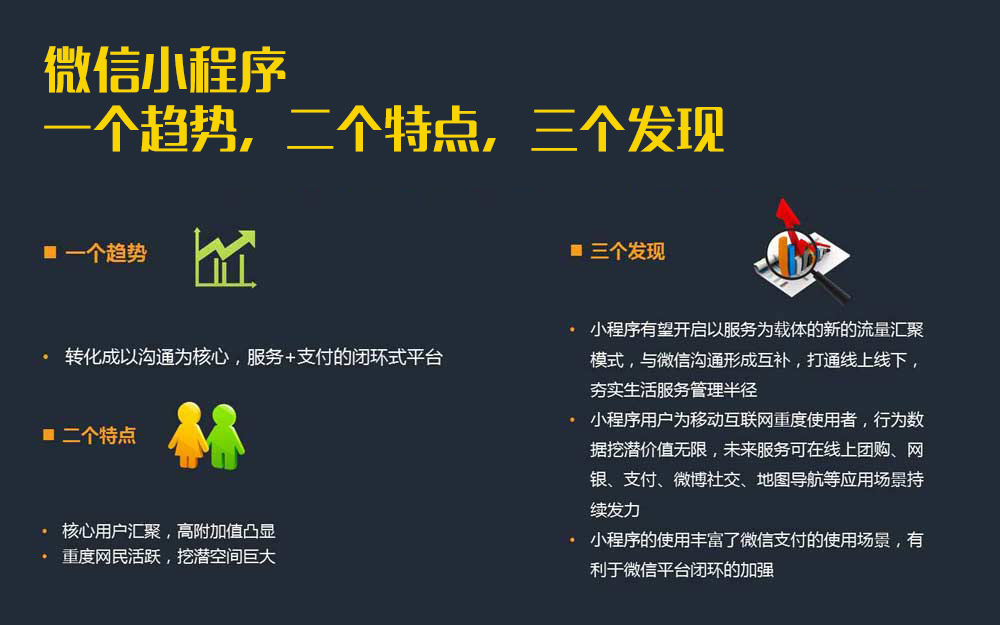 騰訊官方是這樣說的:微信之所以推出小程序,并非想要做應用分發市場,而是給一些優質服務商提供一個開放的平臺。